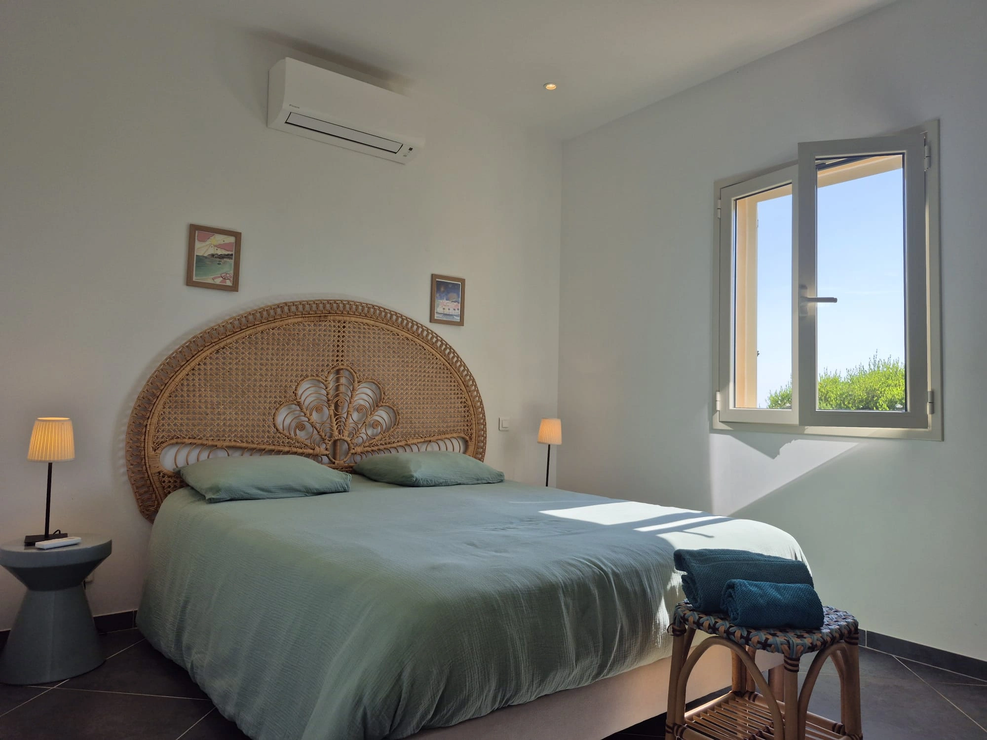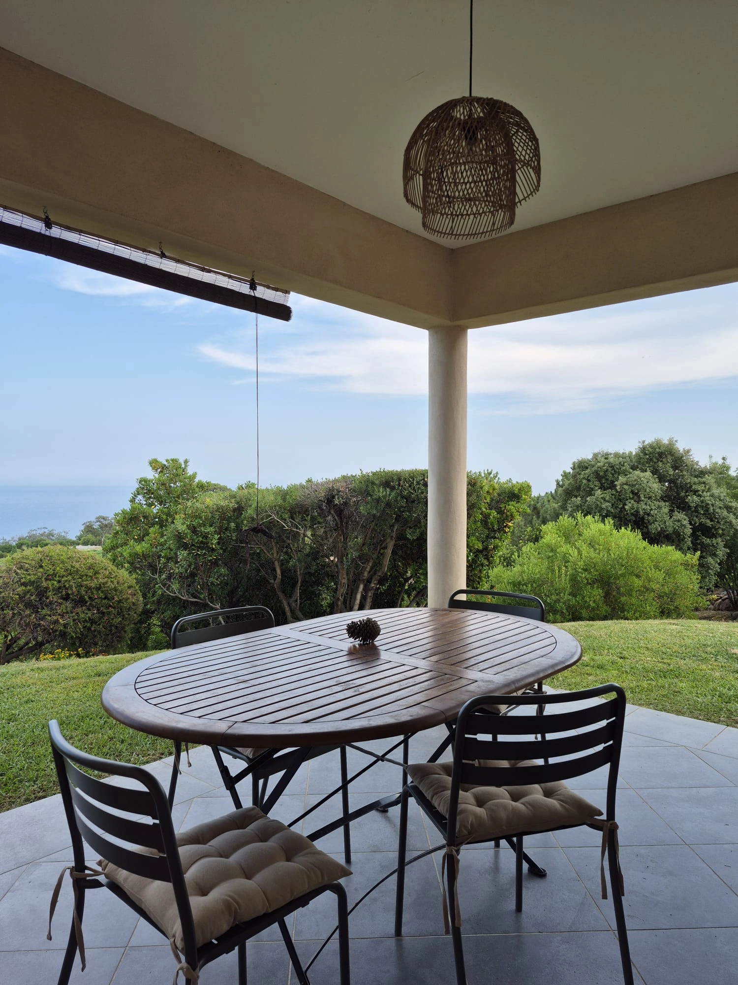 À l'image de son cépage, la villa Sciacarellu séduit par son ambiance lumineuse. Sa décoration aux teintes chaudes et ses matériaux nobles créent une atmosphère conviviale propice au partage, entre confort et élégance méditerranéenne.